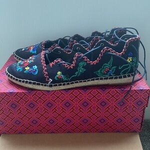 New Tory Burch Sonoma Lace up Embroidered Gillie Espadrille size 7