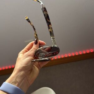 silver hardware and a light grey lens perfect for transitioning indoors (they are not transition lenses, they just aren't pitch black)