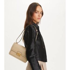New Tory Burch T Monogram Flap Leather Shoulder Crossbody Bag In Fresh Clay