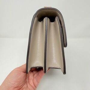 Understated and timeless, the shoulder bag has a structured shape and push-lock hardware inspired by vintage luggage.