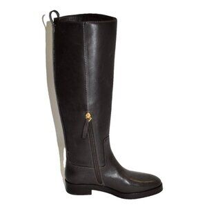 New! Tory Burch The Riding Boot Logo Embossed Coconut Brown Size 6M 141232 DD387