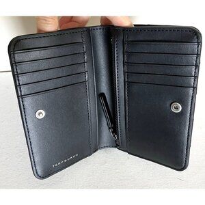 New Tory Burch Willa Matte Medium Leather Wallet Black