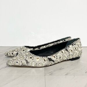 New! Tory Burch Yasmin White Embroidered Pointed Toe Flats 5