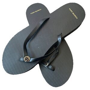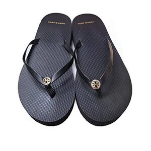 New Tory Burch 86576 Black With Gold Hardware Women's Platform Flip Flops Size 1
