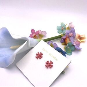 New Tory Burch Peach Enamel Kira Stud Earrings, Comes With Dust Bag
