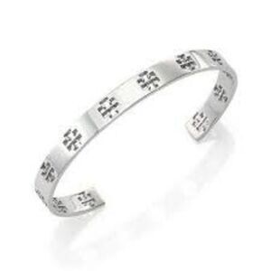 New Tory Burch Silver Logo Cut-Out Cuff Bracelet