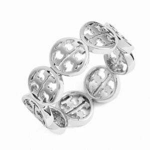 New Tory Burch Silver Round Logo Miller Ring-Sizes 6, 7, 8