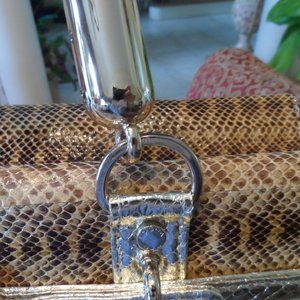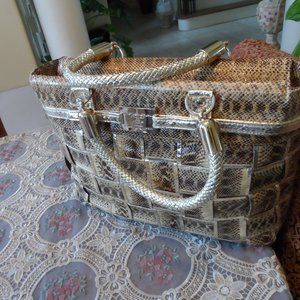 New Tosca Blu Brown/Gold Trim Python Skin Woven Large Satchel