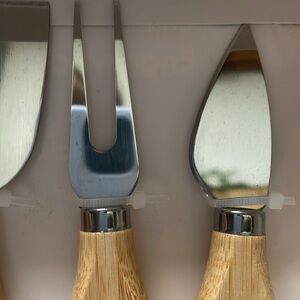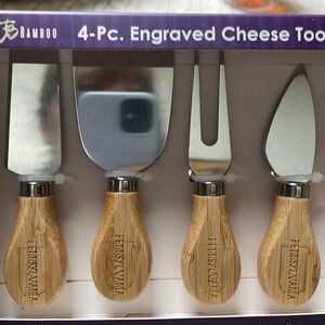 New Totally Bamboo 4 pc Engraved Cheese Tool Set Stainless blades Bamboo handles