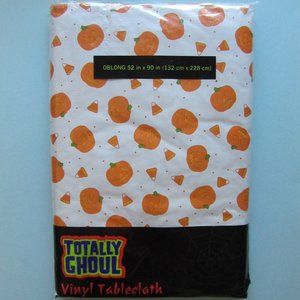 New Totally Ghoul Pumpkin Motif Thanksgiving Oblong Vinyl Tablecloth 52” x 90”