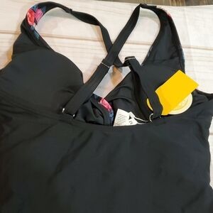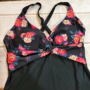 New Tournesol Black Pink Floral One Piece Crisscross Back Swimsuit Size Medium