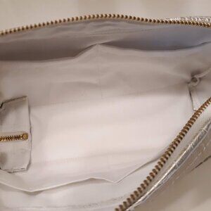New Travel Clutch Wallet Pouch Case Purse Gold Ivory Vinyl Alligator Wristlet
