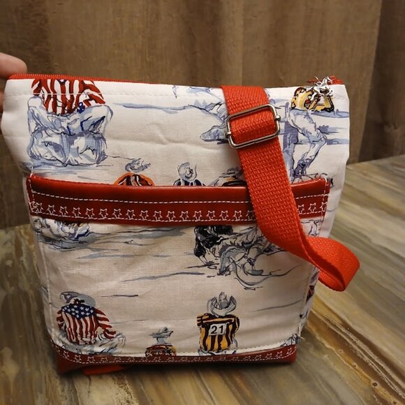 New Travel Sling Crossbody Western Cowboy Rodeo Faux Leather trim Red white blue