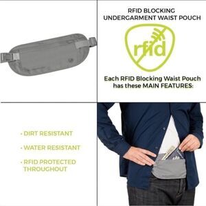 Protect your identity and your valuables with the Travelon's Safe ID Undergarment Waist Pouch. Features RFID protection to prevent card readers from reading RFID enabled credit, debit cards and passports. The 5 pocket design keeps you cash, cards, passport and other valuables safely and securely tucked against your body.