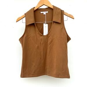 New Travis Mathew Friday Ponte Sleeveless Polo Shirt Chestnut Tan Medium