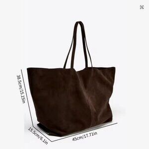 New Trending Large Faux Suede Tote Bag — soft texture, modern square shape, and extra roomy design.