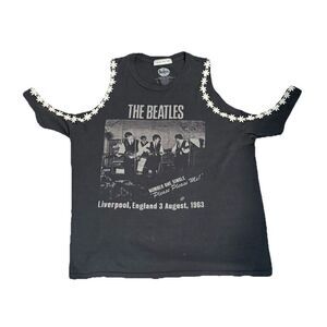 New Trendy and Tipsy The Beatles Cold Shoulder T-Shirt Gray Size Large