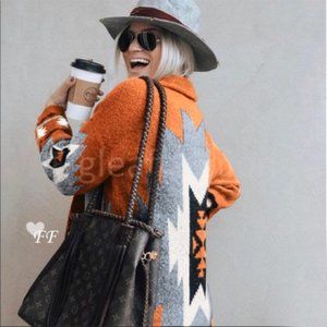 Cozy Native Print Boho Western Blanket Cardigan Sweater. Soft! Oversized Fit.