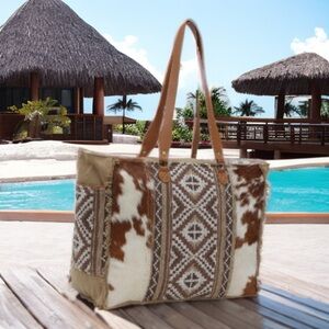 🍂New Tribal Myra Bag Cowhide Canvas Rug Leather Weekender Travel XL Tote Western
