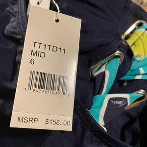 DESIGNER SUMMER SWIMWEAR — This lacing detailed bandeau one-piece by Trina Turk is summertime sweetness with a pinch of sass. A bright, wild print detail dresses up the sweetheart neckline, while the grommet cutout at the bust flashes a tease. Moderate coverage, a removable halter, and removable cups offer support options