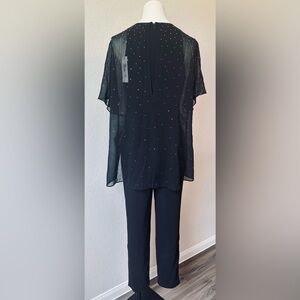 Chic black jumpsuit with sheer embellished sleeves. Perfect for elegant evenings.