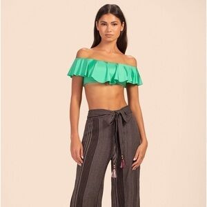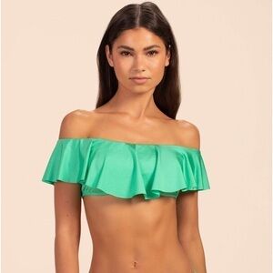 New Trina Turk Ruffle Off The Shoulder Bandeau Top swimsuit, swimwear Sz 10