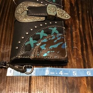 New Trinity Ranch hair-on cowhide buckle collection wristlet wallet