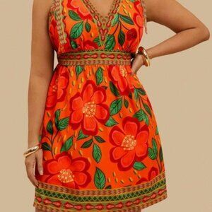 Very pretty & vibrant. Perfect for summer or fall, pair it with leggings and a cardigan. Plus Size. Non-smoking home.