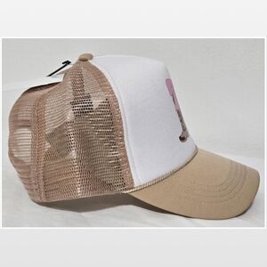 New Trucker Hat Cowboy Boots Pink Bow Tan & White