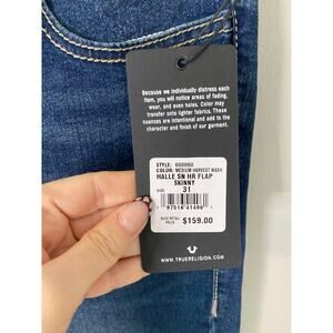 New True Religion Halle High Rise Super Skinny Dark Denim Flap Jeans Size 31