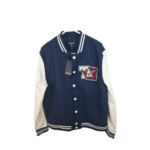 New True Religion Horseshoe Patch Varsity Jacket Navy -white Men Size Medium