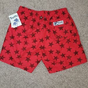 New Trunks Surf & Swim San O Short Lined Swim Trunks Tomato / Black Size S Small