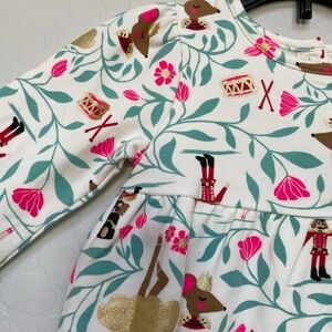 New Tucker + Tate Holiday Nutcracker Sweater Dress size 3 months. New with tags. Beautiful shimmery gold detail make this Christmas print to die for! Cozy soft sweater material & buttons in back for easy on & off.