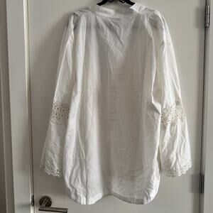 New Tuckernuck Blanc Piper Lace Tunic White Round Split Neck Long Sleeve Sz 3XL