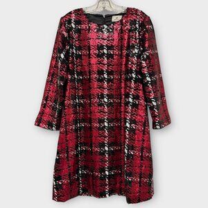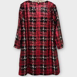 New! Tuckernuck Red Sequin Pierre Tartan Plaid Shift Dress with Pockets Sz Large