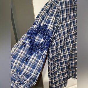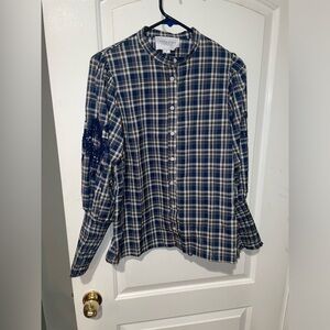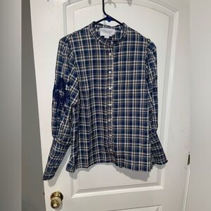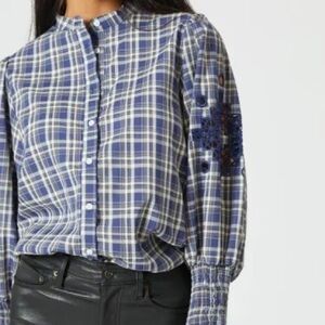 New! Tuckernuck x The Shirt by Rochelle Behrens Sandy Embroidered Plaid Top 💙 S