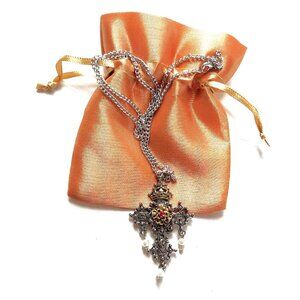 Solid pewter pendant (Tudor rose Hampton Court Cross) with gold plating and crystal/faux pearl details- Includes chain