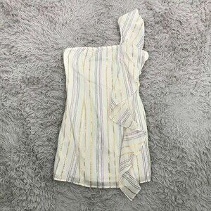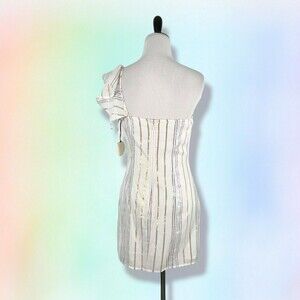 Tularosa Cait Ruffle Marshmallow metallic Stripped One-Shoulder Mini Dress S NWT