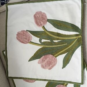 2pc pillow case only, Farmhouse Tulip Throw Pillow Covers, embroidered, flowers are tufted.