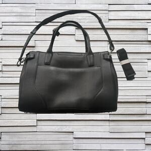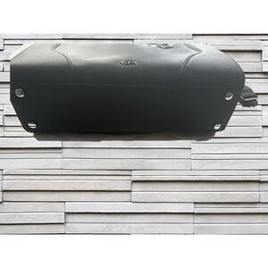 Brand new! Solid black Tumi briefcase/ commuter / computer bag. Pebbled grain. Very roomy with lots of storage! Three sections. Two zippered. The center section has three slotted pockets and a zippered pocket too. Easily fits many hikes, laptop and more. Exterior has two compartments. Removable adjustable shoulder strap. Rates shoulder strap in nylon. A very executive looking bag. Selling as I’m downsizing my closet.