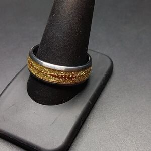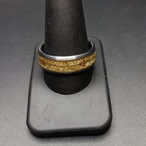 New Tungsten Carbide Silver Ring With Arrow And Gold Foil Inlay For Men Size 12. Marked Tungsten Carbide.