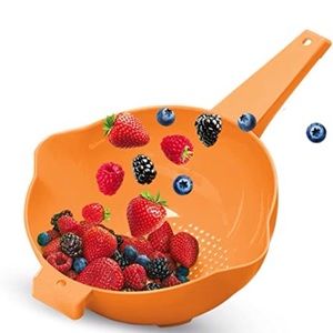 New Tupperware Colander Orange 2 Quart Long Handle Place Pasta Strainer