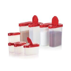New Tupperware Spice Shakers with Carousel 8 large, 8 small shakers red