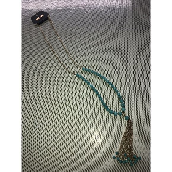 New Turquoise Beaded Boho Tassel Necklace by MIXIT.