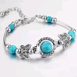 New Turquoise & Butterfly Decor Bracelet For Wan