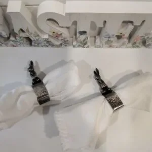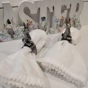 Add charm to your table with these white bunny napkin rings. Perfect for any occasion.