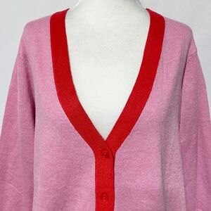 New Two Tone Button Front V-Neck Cardigan Sweater Pink Red Size Medium