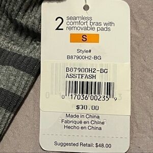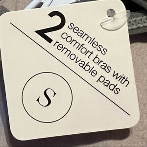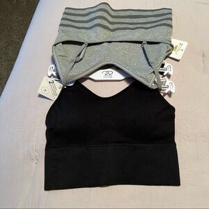New with tags. Rene’ Rofe’ two seamless comfort sports bras with removable pads. One gray, one black. Adjustable straps.
