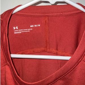 Under Armour Project Rock bull t-shirt, new with tag still attached (please refer to photos for condition, small hole from where other tag was in photo 2 and 3), color is red and orange (similar to photos), logo bull on the front, has UA logo on left sleeve, loose fit, material made of cotton and polyester, size medium womens