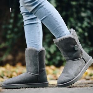 From UGG®, the Bailey Button II Suede Water-Repellent Boots feature: